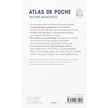 • On trouvera dans cet Atlas de Poche un état cartographique complet des 5 continents et des quelque 190 pays qui composent le monde.• 15 000 noms de lieux, aisément localisables, sont répertoriés dans un index.• Des tableaux d'assemblage, en début de volume, permettent de situer chaque carte dans son environnement régional et continental.• Les bouleversements géopolitiques les plus récents font l'objet d'une information visuelle détaillée.• Dans un format de poche, cet atlas offre au lecteur les mêmes ressources et les mêmes facilités de consultation que la plupart des atlas traditionnels.